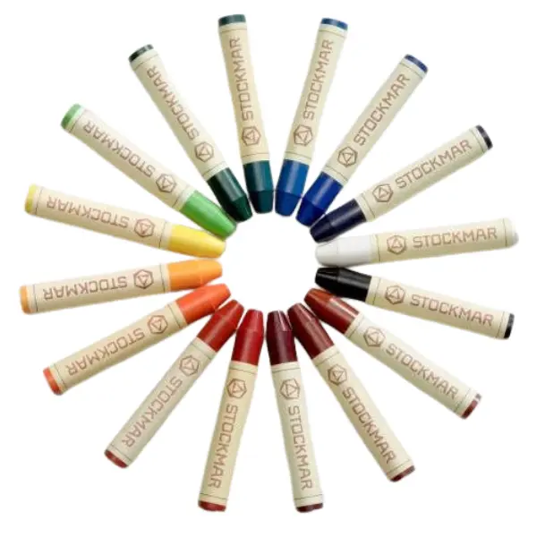 Com a adição de cera de abelha, de pigmentos não tóxicos e resistentes à luz, o bloco inquebrável de cera da Stockmar satisfaz as exigências artísticas mais ambiciosas. As aplicações aderem bem tanto em superfícies lisas ou rugosas tais como pergaminho, madeira, metal, vidro ou papel de desenho, com excelentes resultados na mistura de cores. Graças às suas arestas desiguais, o bloco inquebrável permite o efeito de manchas de cores. Fabricado com as normas dos produtos alimentares. LAVÁVEL COM ÁGUA MORNA.