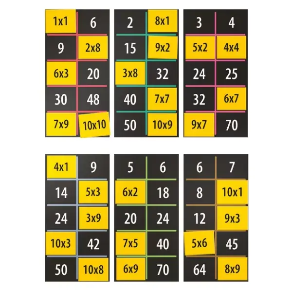 Tira uma carta, lê a multiplicação e encontra o resultado correspondente. Mas atenção por vezes terás de ser mais rápido do que o teu adversário!