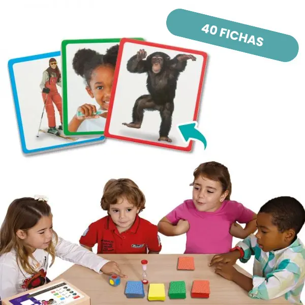 Se não adivinharem no tempo definido, coloca de novo a carta no monte correspondente, com a face virada para baixo. Ganha o jogador que mais vezes acertar e acumular mais fichas!