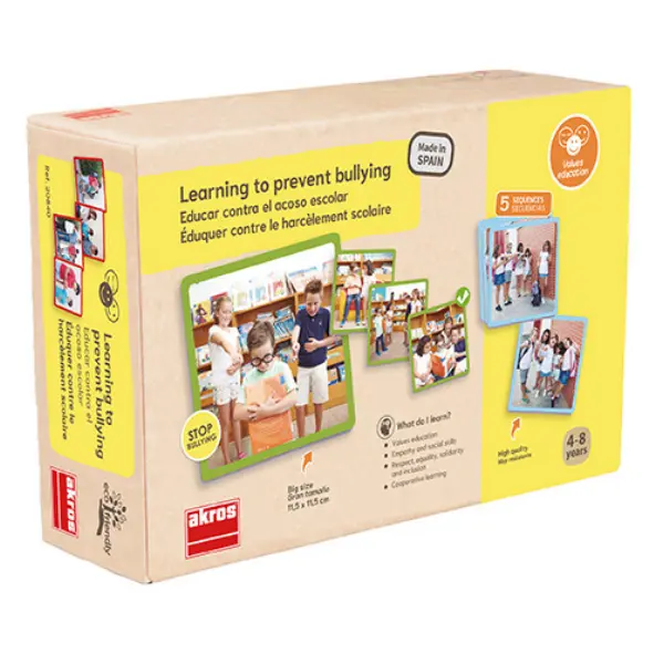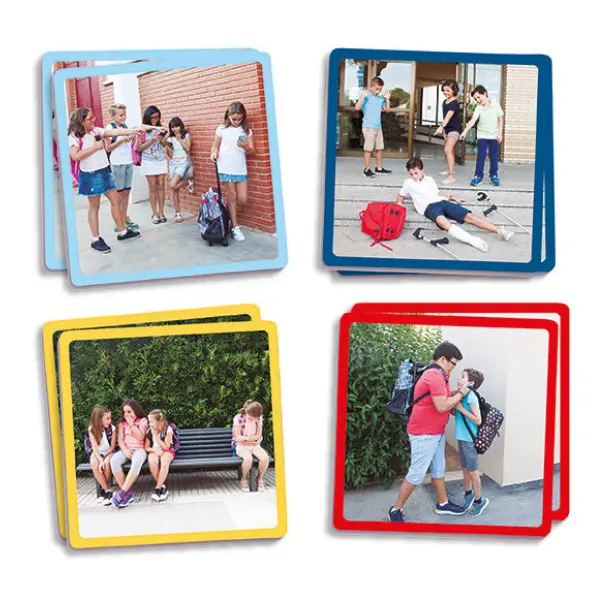 Conjunto de 5 sequências de imagens que permitem educar e consciencializar os mais pequenos para prevenir situações de abuso escolar (bullying), assim dotá-los de estratégias para o enfrentarem.