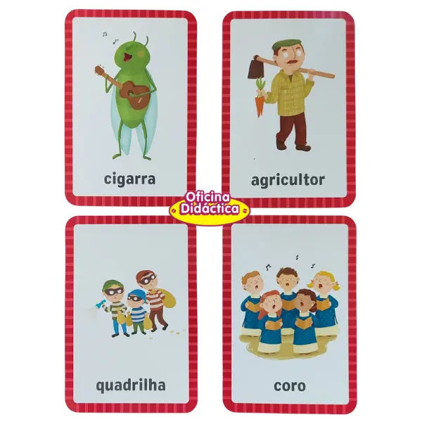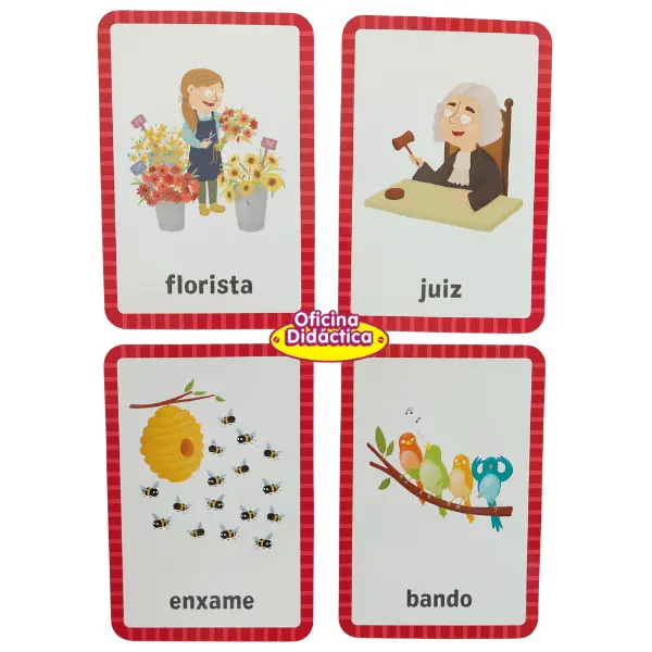 Objetivo: Formar o maior número de pares de cartas do mesmo grupo (pares de cartas no singular, no plural, no masculino, no feminino ou pares de coletivos).