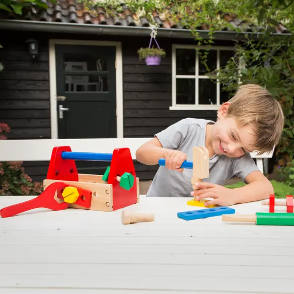 Kit de ferramentas de madeira incluí várias ferramentas para horas de diversão criativa e “construtiva”. Para mãos pequenas imaginarem e criarem, ao mesmo tempo que desenvolvem a destreza manual.