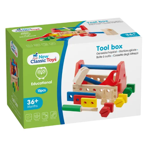 Idade: +3 anos | Conteúdo: martelo, chave de fendas, chave inglesa, 2 pregos, 3 porcas, 3 parafusos e 3 conetores para muitas horas de diversão criativa e “construtiva” | Dimensões: 205 x 140 x 120mm.
