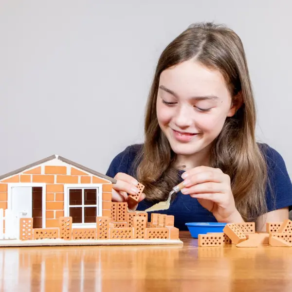 Idade: +6 anos | Conteúdo: ferramentas (colher de pedreiro), argamassa e instruções | Dimensões: 35 x 29 x 8 cm.