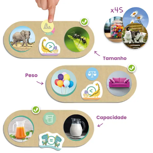 • A comparar objetos de acordo com o tamanho, o peso, a capacidade e a quantidade