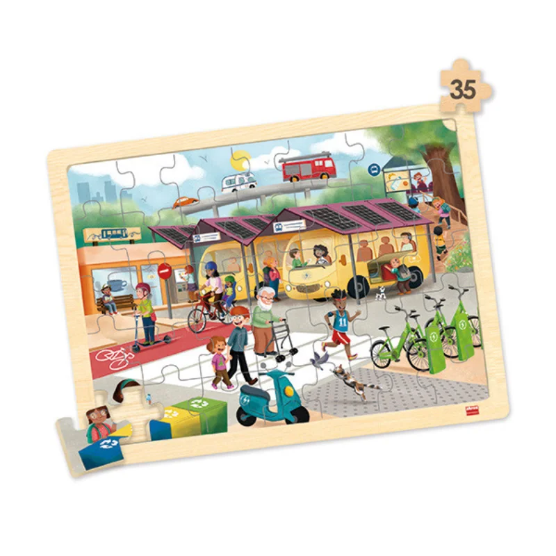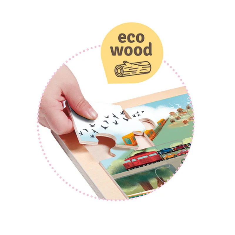 Conjunto de 4 puzzles ECO de madeira, com 24 peças cada.
