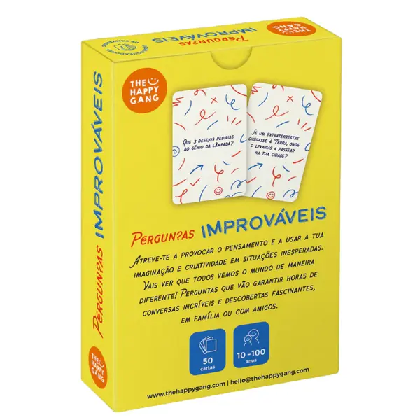 Idade: dos 10 aos 100 anos | Conteúdo: 50 Cartas | Nº Jogadores: + 2 | Dimensões: 8 x 12 x 2,5 cm.
