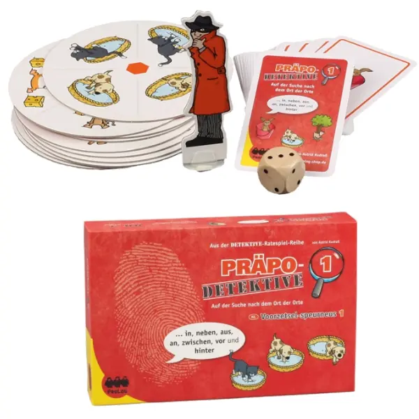 O jogador escolhe uma carta e o seu adversário tenta adivinhar qual o locativo correspondente no disco apresentado. O dado indica o número de tentativas possíveis. Mas atenção, porque o ladrão está à espreita, para obter mais cartas com os seus longos dedos.