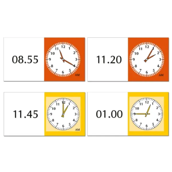 Jogo de Dominó em que de um dos lados estão as horas em formato digital e do outro em formato analógico, entre as 0 e as 12 horas. Quem será o mais rápido a fazer a correspondência?