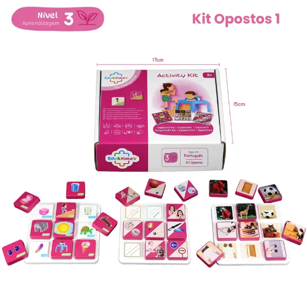 Descubra o Jogo Educativo de correspondência Kit de Jogos Super Combo Opostos 1, um conjunto que inclui três tabuleiros explorando o conceito de opostos. Ensine o seu filho sobre os antónimos com imagens reais e ilustrativas para promover o desenvolvimento cognitivo. Este jogo ajuda as crianças a compreender melhor o mundo ao abordar conceitos como cima/baixo, grande/pequeno, quente/frio, entre outros.