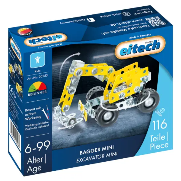 As crianças podem construir a sua própria escavadora para brincar, usando as 116 peças.