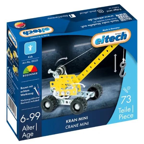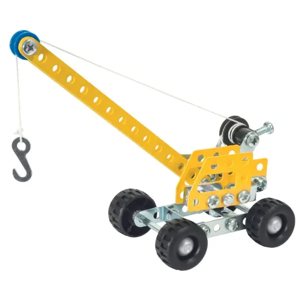 Crianças a partir de 6 anos podem construir seu próprio guindaste com 73 peças e entrar no mundo emocionante da construção.