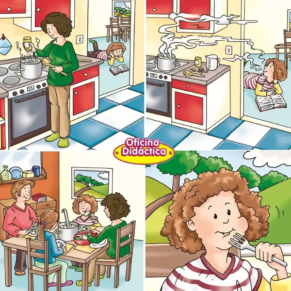 Conhecer e usar os verbos do dia-a-dia com histórias ilustradas, as crianças aprendem a nomear as atividades corretamente, a conjugar os verbos e a usá-los em conjunto com diferentes partes de uma frase.