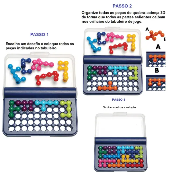 Encaixe todas as peças do puzzle 3D no tabuleiro de jogo de tal forma que ele se transforma numa imagem 2D (plana). Um dos lados de cada peça do enigma tem 1 esfera, o outro tem 2 esferas. Então, dependendo maneira como se orienta a peça, assim se fica com mais ou menos bolas. Quando resolvido, todas as peças do quebra-cabeça cobrem o tabuleiro do jogo sem qualquer buraco descoberto.