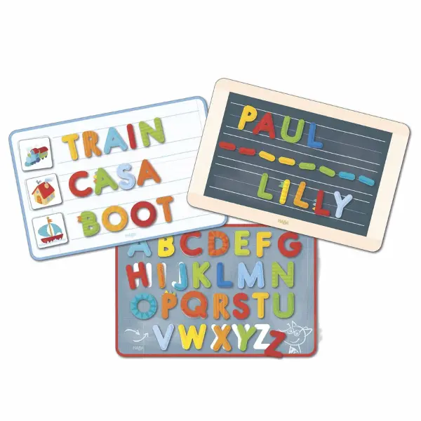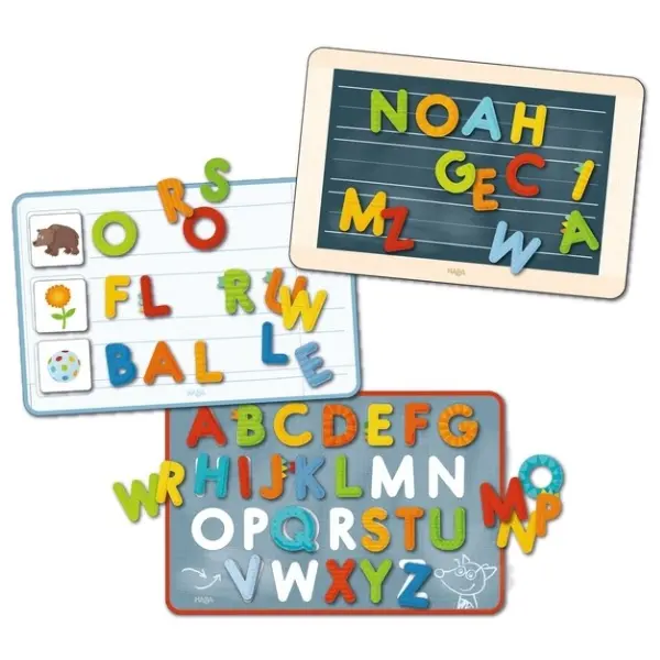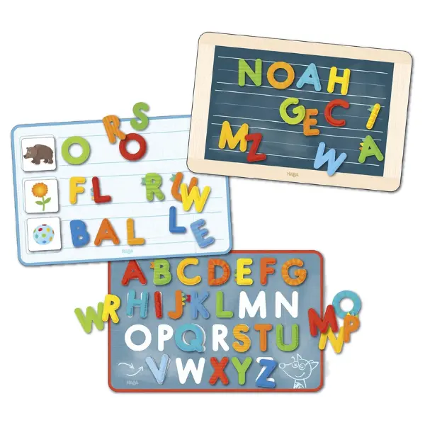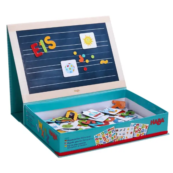 Com 3 cenários à escolha, as crianças podem usar as 147 peças magnéticas para aprender as letras e escrever frases simples, aprendendo de forma divertida.