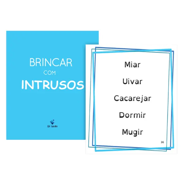 - 50 cartas com 5 palavras cada, pertencendo 4 delas à mesma categoria e, sendo uma delas o intruso;