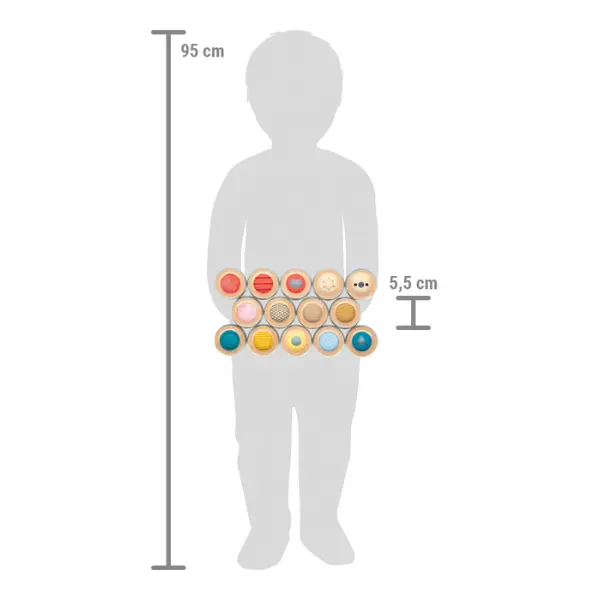 Idade: +3 anos | Conteúdo: 28 peças de jogo, incluindo 7 pares de silhuetas de madeira e 7 pares de tecido | Dimensões: Ø aprox. 5,5 cm; Altura – aprox. 1,5 cm.