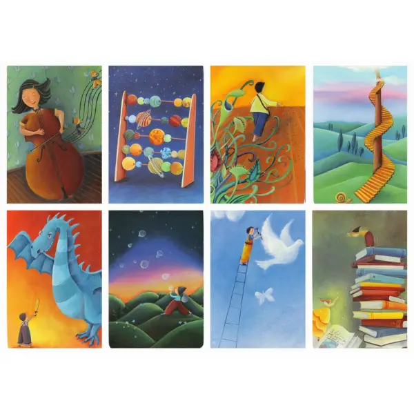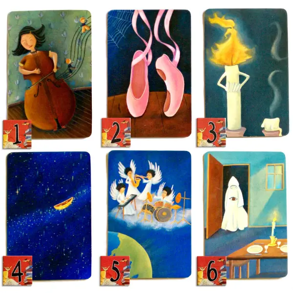 Na verdade Dixit é muito mais do que um jogo; é um convite ao jogador para abrir a sua mente e a desvendar o que nela se esconde. Vamos suster a respiração… Sobre a mesa estão expostas diversas ilustrações.