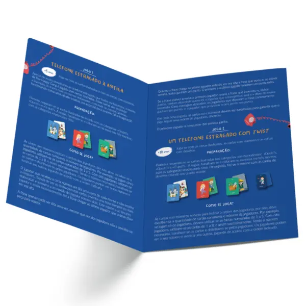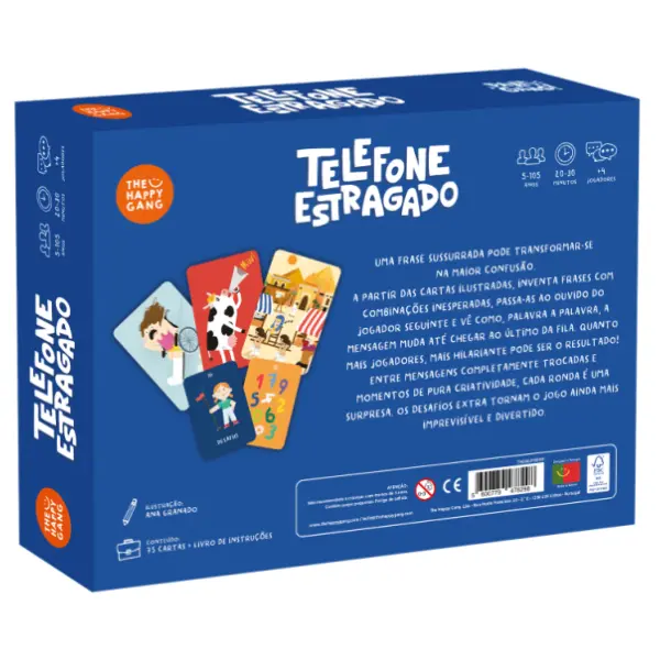A partir das cartas ilustradas, inventa frases com combinações inesperadas, passa-as ao ouvido do jogador seguinte e vê como, palavra a palavra, a mensagem muda até chegar ao último da fila. Quantos mais jogadores, mais hilariante pode ser o resultado!