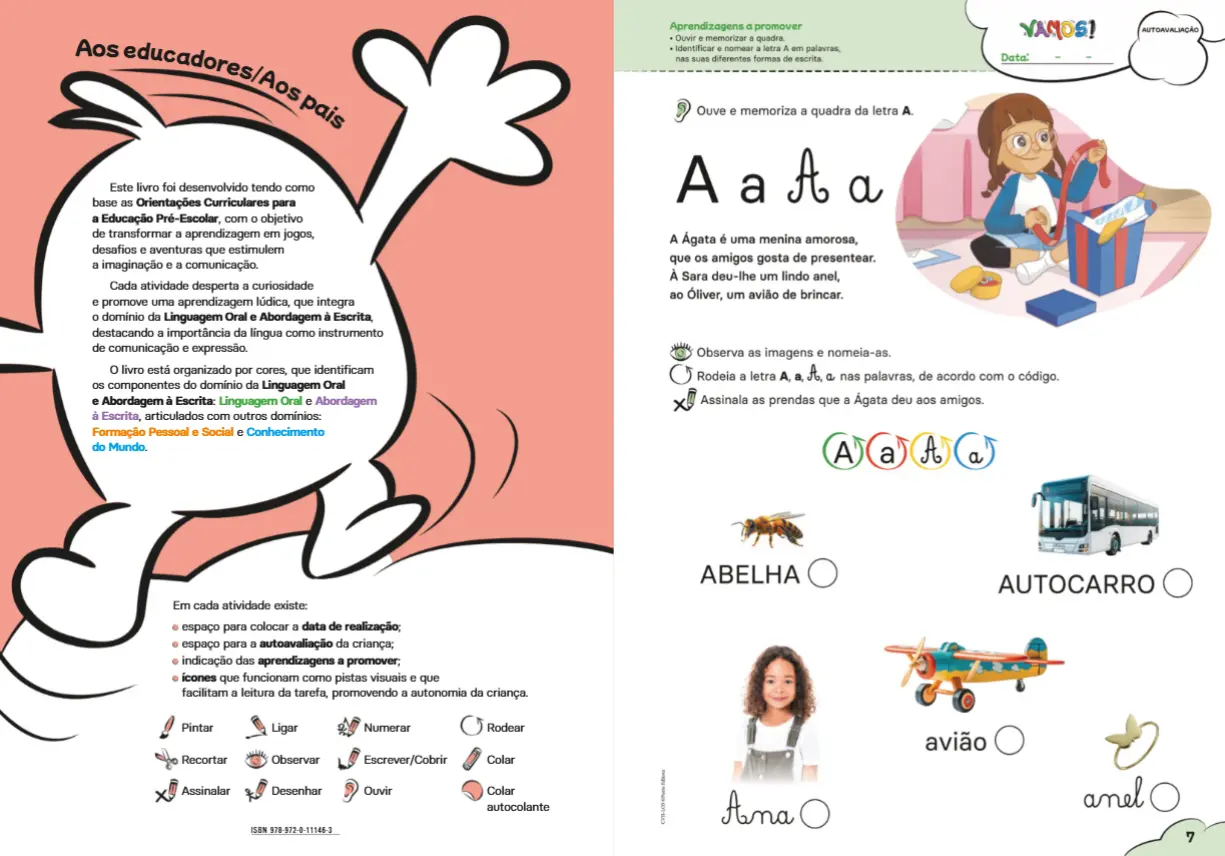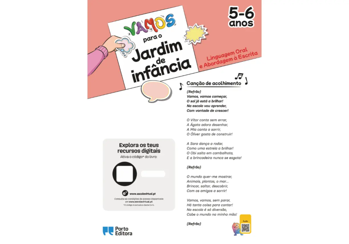 Vamos para o jardim de infância – Linguagem Oral e Abordagem à Escrita 5-6 anos foi desenvolvido a partir das Orientações Curriculares para a Educação Pré-Escolar, com o objetivo de transformar a aprendizagem em momentos de jogo, descoberta e aventura que estimulem a imaginação e a comunicação.