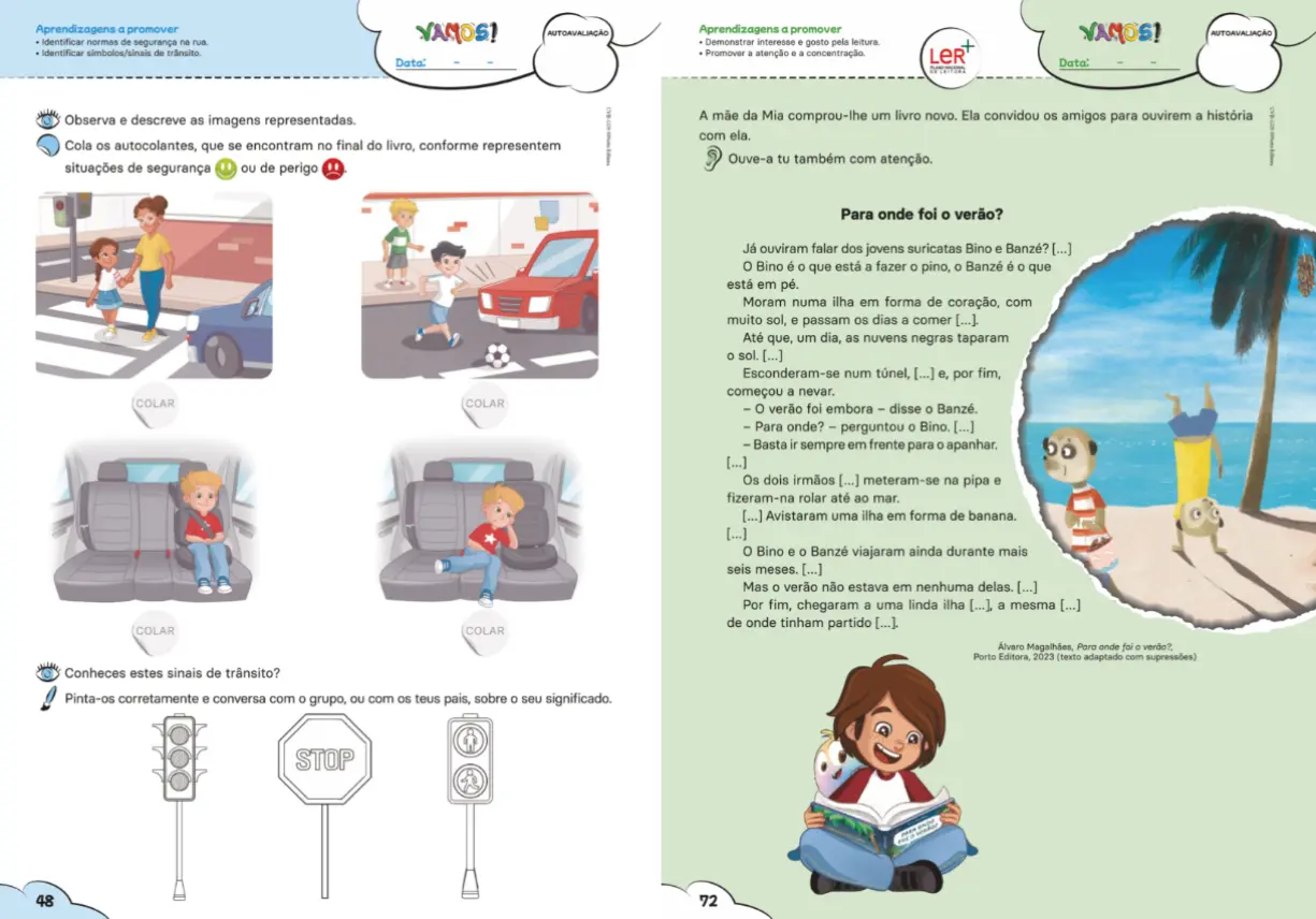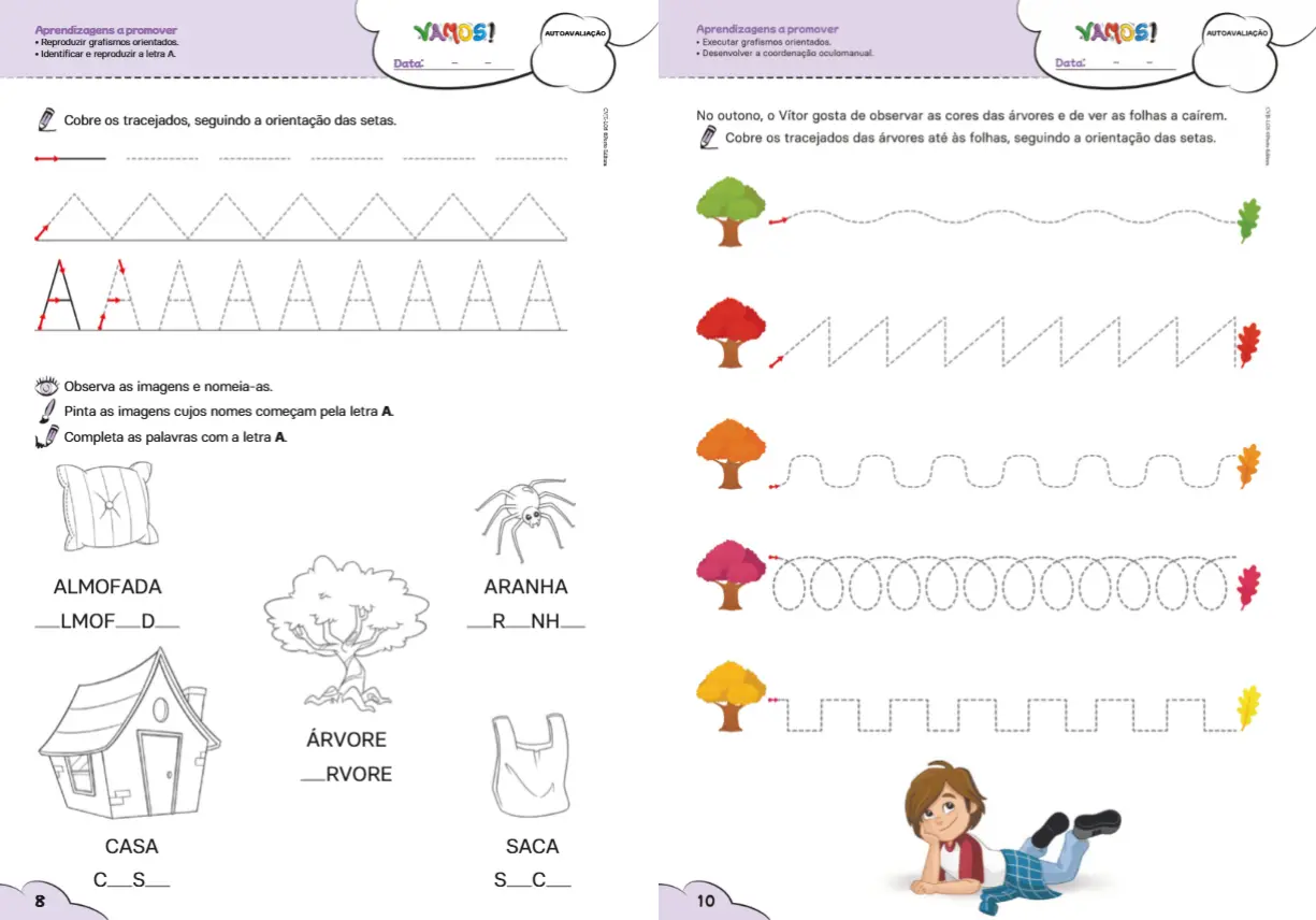 As personagens Vítor, Ágata, Mia, Óliver, Sara (VAMOS!) e o simpático Obi, já bem conhecidas pelos alunos do 1.º ciclo do ensino básico, acompanham agora os mais pequenos nesta nova etapa, tornando a aprendizagem mais cativante e preparando-os com entusiamo para a etapa escolar seguinte.