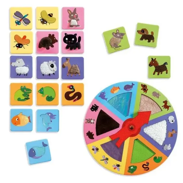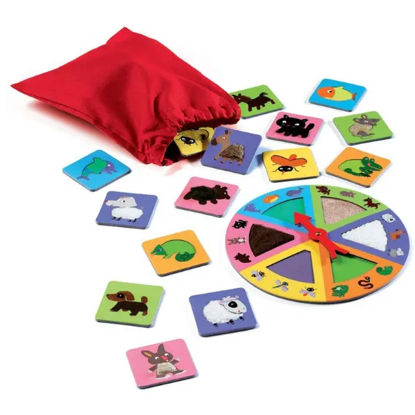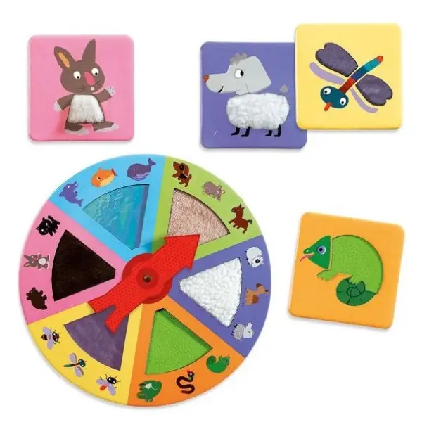 Encontra o urso fofinho, a ovelha frisada ou o lagarto áspero pelo toque – esse é o desafio tátil que começa com o girar da roleta!