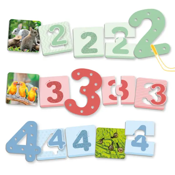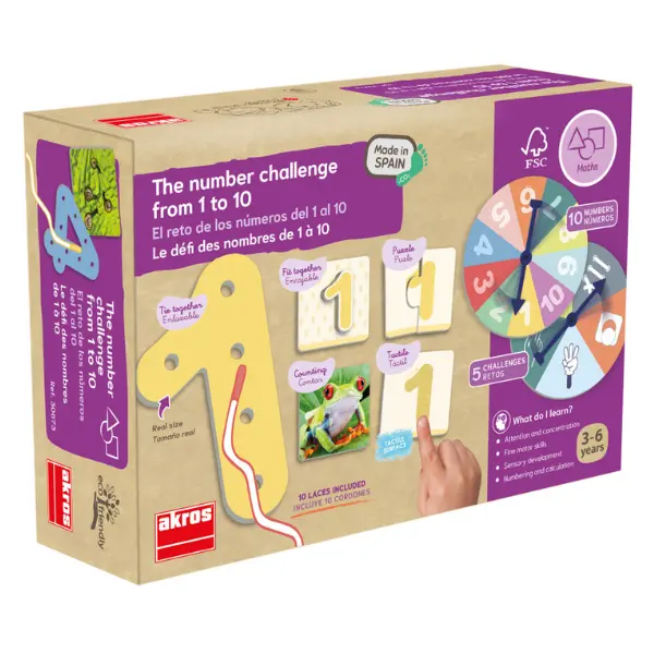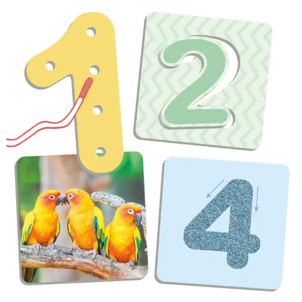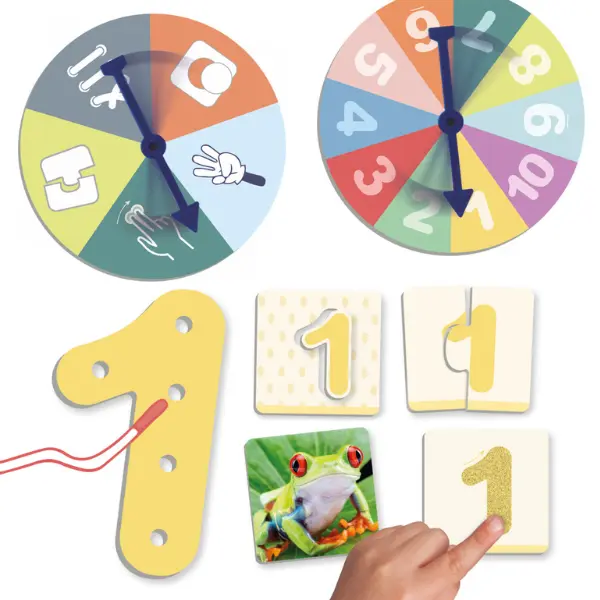 Conteúdo: 2 roletas (12 cm), 40 cartões quadrados (6,5 cm), 10 números em silhueta (8 x 7 cm) e 10 cordões ergonómicos.