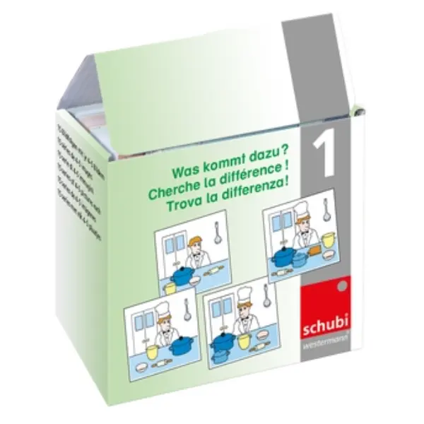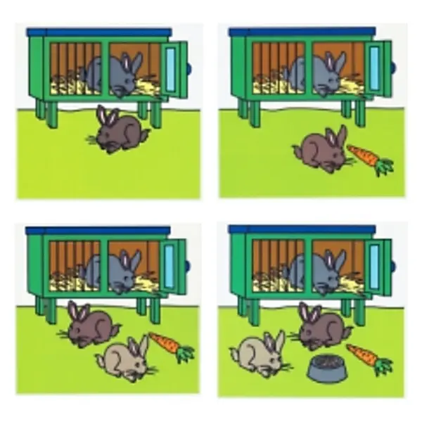 Descrever as diferenças de uma imagem face à próxima, desenvolve o vocabulário e promove a expressão oral. Representações simples e claras de objetos, mudam de imagem para imagem num único detalhe que deve ser encontrado e nomeado.