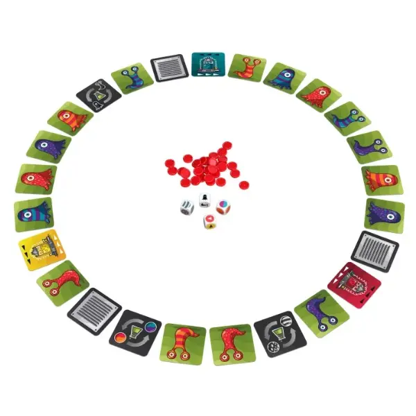 Idade: +8 anos | Nº de Jogadores: 2 a 10 | Duração: 10 min | Conteúdo: 25 cartas, 4 dados, 30 fichas e 1 livro de regras | Dimensões: 14,5 x 10,7 x 2 cm.