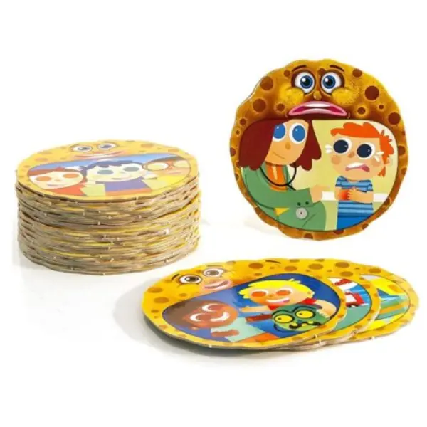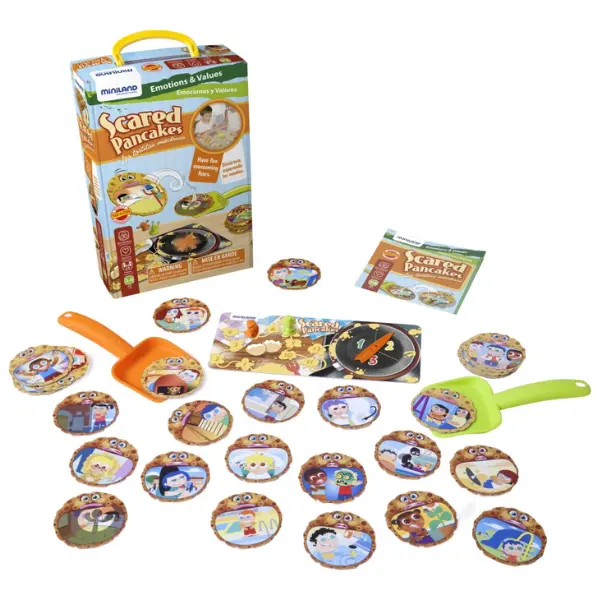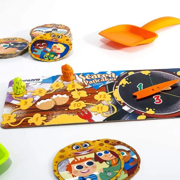 Idade: dos 3 aos 6 anos | Conteúdo: 30 cartões; 2 pás, 1 roleta, 2 personagens e um guia com instruções | Dimensões: 34 x 22 x 8 cm.