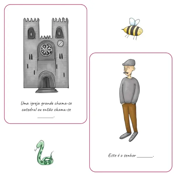 Este material de intervenção terapêutica foi primordialmente pensado para terapeutas da fala, contudo pode ser utilizado por outros profissionais, é constituído por 48 cartões estímulo que são pares mínimos e dois cartões onomatopaicos: um pretende apresentar o som “s”, este é patente no desenho de uma cobra e outro para “z” representado num desenho de uma abelha.