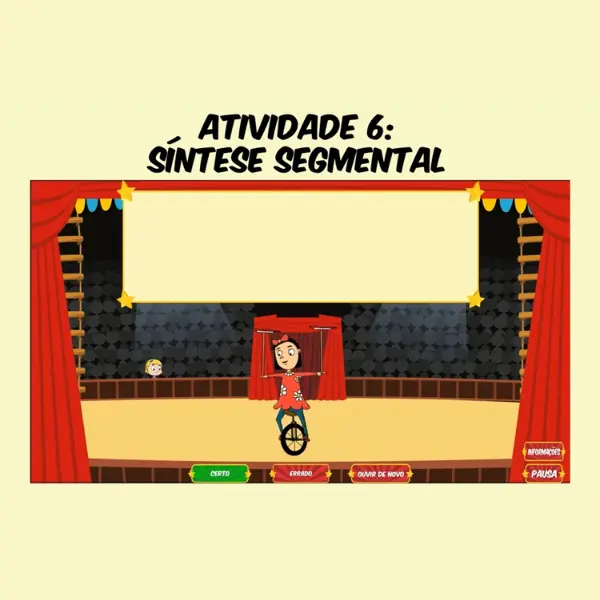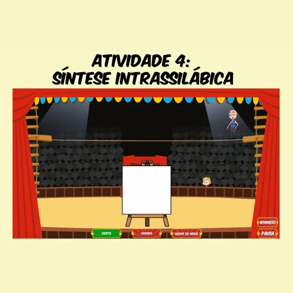 Atividade 4: Síntese intrassilábica – O equilibrista Igor ajuda na promoção da síntese da sílaba, de forma a juntar o ataque e a rima. Para ver o vídeo clique aqui.