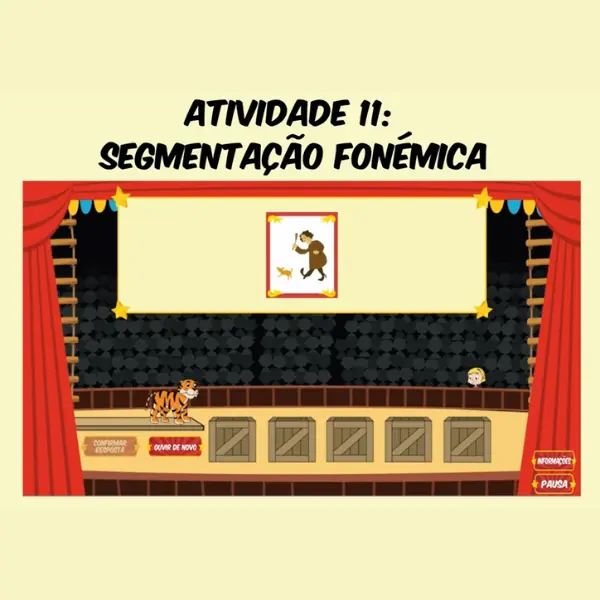 Atividade 11: Segmentação segmental – O tigre Riscas ajuda na promoção da segmentação da palavra em segmentos. Para ver o vídeo clique aqui.