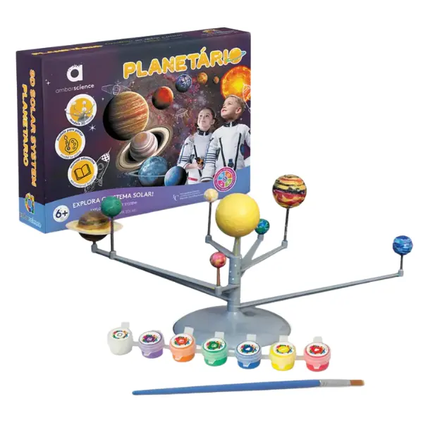 Idade: +6 anos | Conteúdo: kit de pintura e manual educativo com muitas curiosidades sobre os diferentes planetas.