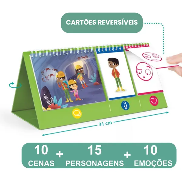 | Conteúdo: expositor com: 10 cenas, 15 personagens e 10 emoções | Largura do expositor: 31 cm | Consulte o Guia Didático clicando aqui.