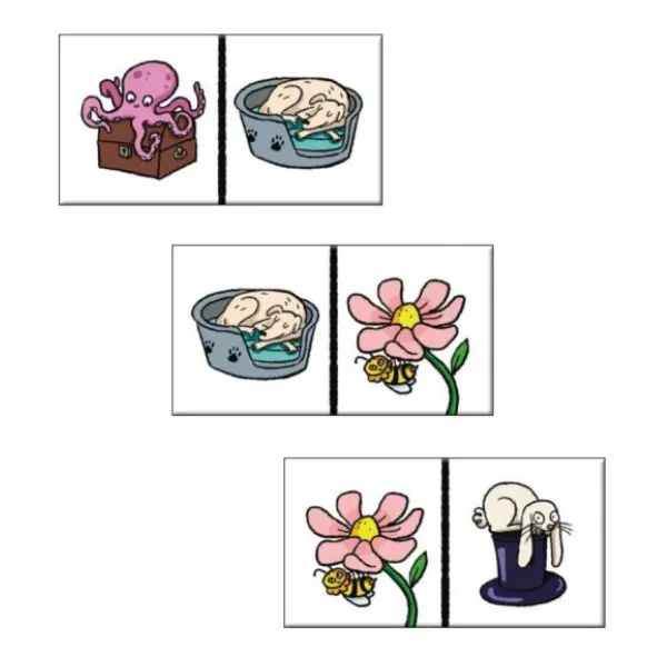 Nível de Dificuldade – Difícil: Não interessa qual o animal escolhido nem a sua posição. Numa posição idêntica (preposição), que foi pousada anteriormente, à carta que se encontra no centro do jogo. O objeto em relação à posição do animal, não desempenha qualquer função.