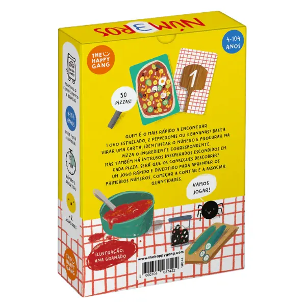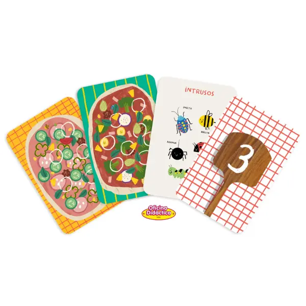 Basta virar uma carta, identificar o número e procurar na pizza o ingrediente correspondente. Mas também há intrusos inesperados escondidos em cada pizza. Será que consegues descobrir?
