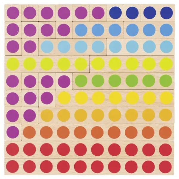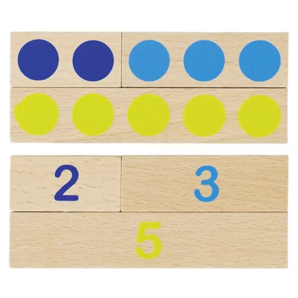 Com este jogo, as crianças aprendem princípios básicos da matemática, usando todos os sentidos. São um ótimo recurso para aprenderem os números e para exercitarem a tabuada. Composto por 36 peças de madeira, numa caixa também em madeira.