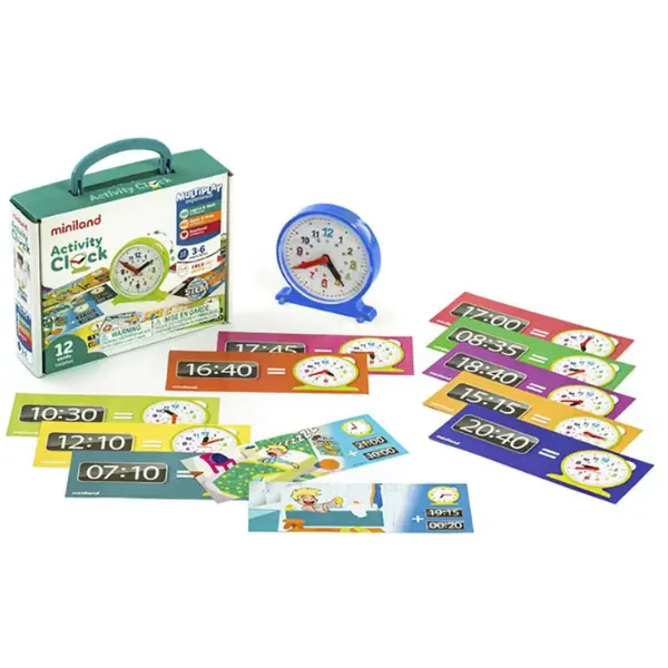 Idade: dos 3 aos 6 anos | Conteúdo: Relógio; 24 cartões de atividades.