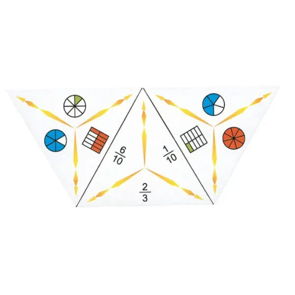 Schubitrix é uma nova forma de jogar o dominó. Os cartões deverão ser associados pelo correspondente adequado. Este jogo contempla a equivalência entre frações. No final, quando as peças estiverem todas emparelhadas, há-de obter-se uma determinada configuração, permitindo saber se as contas foram bem efetuadas…