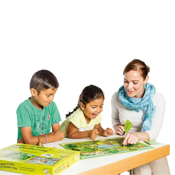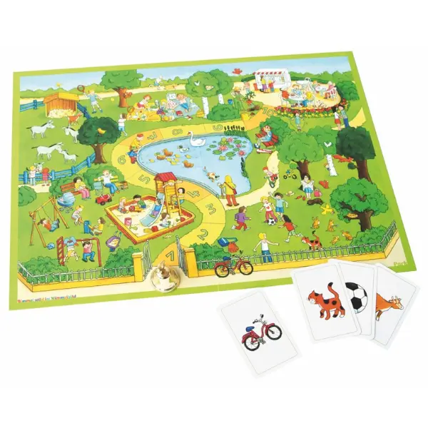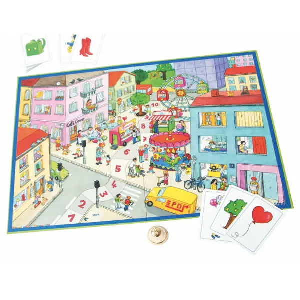 Este jogo permite a iniciação ao uso de substantivos, verbos e adjetivos de forma lúdica. Com dois ambientes distintos criados com dois tabuleiros de jogo: o “Parque” e a “Cidade“.