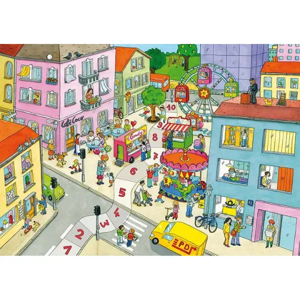O tabuleiro com o motivo “Cidade” tem um maior grau de dificuldade e fornece “profissões” como tema semântico.