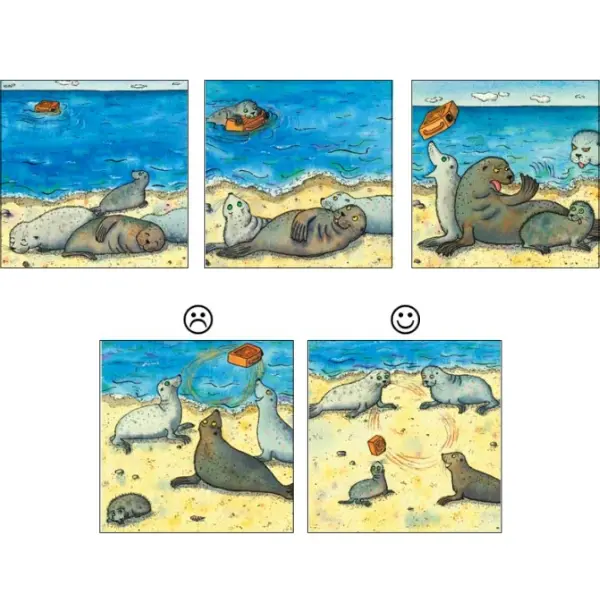 Idade: +8 anos | Conteúdo: 13 sequências de imagens coloridas, cada com 5-7 imagens (9×9 cm); Instruções incluindo propostas de utilização e sugestões para o ensino.